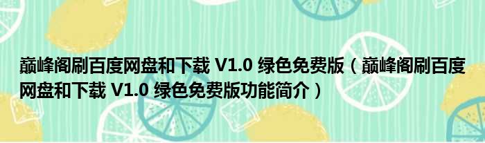 巅峰阁刷百度网盘和下载 V1.0 绿色免费版(巅峰阁刷百度网盘和下载 V1.0 绿色免费版功能简介)