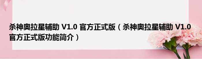 杀神奥拉星辅助 V1.0 官方正式版(杀神奥拉星辅助 V1.0 官方正式版功能简介)