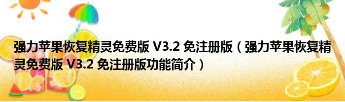 强力苹果恢复精灵免费版 V3.2 免注册版(强力苹果恢复精灵免费版 V3.2 免注册版功能简介)