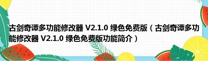 导读 大家好,关于古剑奇谭多功能修改器 V2 1 0 绿色免费版,古剑奇谭多功能修改器 V2 1 0 绿色免费版功能简介这个很多人还不知道,小勒来为大