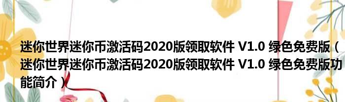导读 大家好,关于迷你世界迷你币激活码2020版领取软件 V1 0 绿色免费版,迷你世界迷你币激活码2020版领取软件 V1 0 绿色免费版功能简介这个