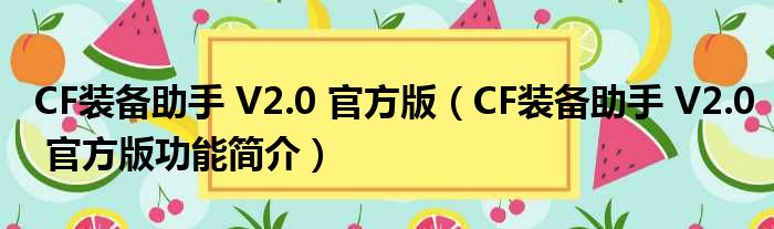 导读 大家好,关于CF装备助手 V2 0 官方版,CF装备助手 V2 0 官方版功能简介这个很多人还不知道,小勒来为大家解答以上的问题,现在让我们一起