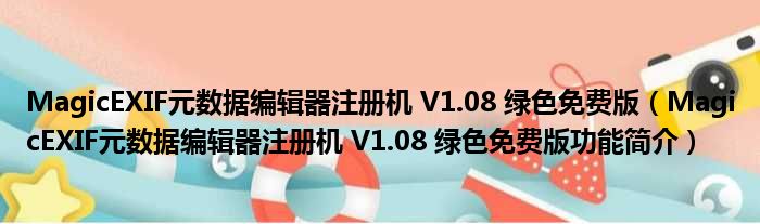 MagicEXIF元数据编辑器注册机 V1.08 绿色免费版(MagicEXIF元数据编辑器注册机 V1.08 绿色免费版功能简介)