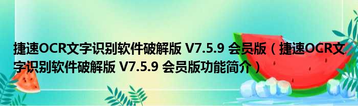 捷速OCR文字识别软件破解版 V7.5.9 会员版(捷速OCR文字识别软件破解版 V7.5.9 会员版功能简介)