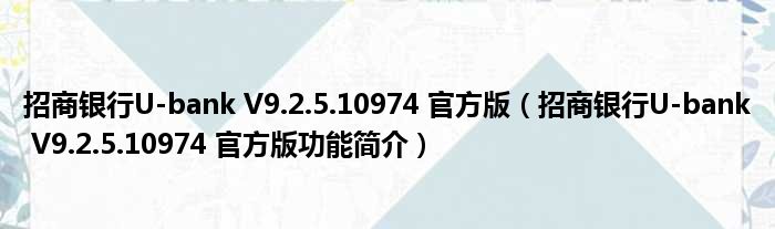 导读 大家好,关于招商银行U-bank V9 2 5 10974 官方版,招商银行U-bank V9 2 5 10974 官方版功能简介这个很多人还不知道,小勒来为大家解答以