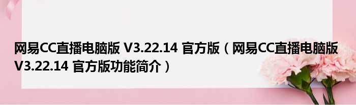 网易CC直播电脑版 V3.22.14 官方版(网易CC直播电脑版 V3.22.14 官方版功能简介)