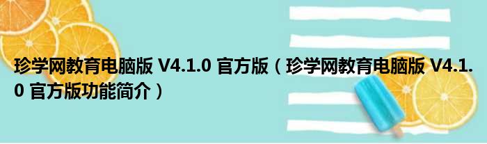 导读 大家好,关于珍学网教育电脑版 V4 1 0 官方版,珍学网教育电脑版 V4 1 0 官方版功能简介这个很多人还不知道,小勒来为大家解答以上的问题