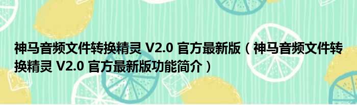 神马音频文件转换精灵 V2.0 官方最新版(神马音频文件转换精灵 V2.0 官方最新版功能简介)