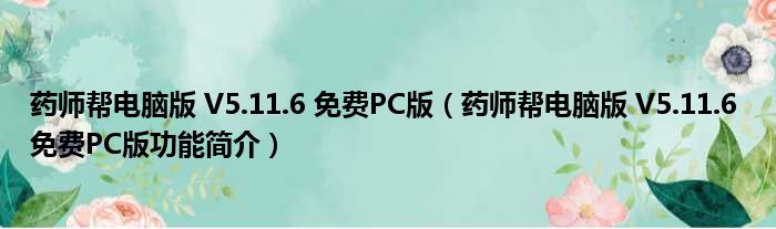 大家好,关于药师帮电脑版 V5.11.6 免费PC版,药师帮电脑版 V5.11.6 免费PC版功能简介这个很多人还不知道,小勒来为大家解答以上的问题,现在让我们一起来看看吧!