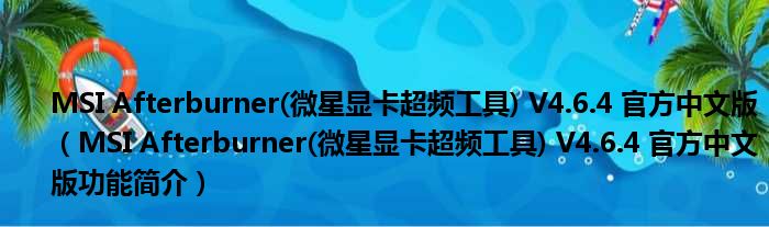MSI Afterburner(微星显卡超频工具) V4.6.4 官方中文版(MSI Afterburner(微星显卡超频工具) V4.6.4 官方中文版功能简介)