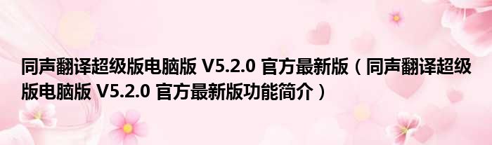 同声翻译超级版电脑版 V5.2.0 官方最新版(同声翻译超级版电脑版 V5.2.0 官方最新版功能简介)
