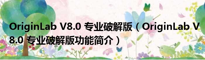 导读 大家好,关于OriginLab V8 0 专业破解版,OriginLab V8 0 专业破解版功能简介这个很多人还不知道,小勒来为大家解答以上的问题,现在让我
