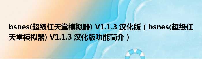 导读 大家好,关于bsnes(超级任天堂模拟器) V1 1 3 汉化版,bsnes(超级任天堂模拟器) V1 1 3 汉化版功能简介这个很多人还不知道,小勒来为大家