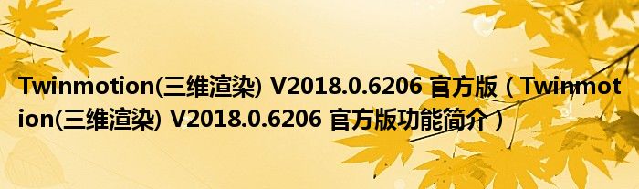 导读 大家好,关于Twinmotion(三维渲染) V2018 0 6206 官方版,Twinmotion(三维渲染) V2018 0 6206 官方版功能简介这个很多人还不知道,小勒来