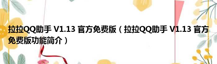 导读 大家好,关于拉拉QQ助手 V1 13 官方免费版,拉拉QQ助手 V1 13 官方免费版功能简介这个很多人还不知道,小勒来为大家解答以上的问题,现在