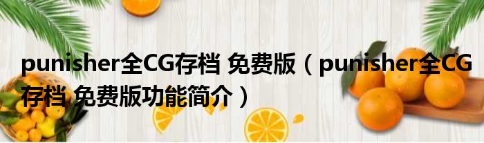 punisher全CG存档 免费版(punisher全CG存档 免费版功能简介)