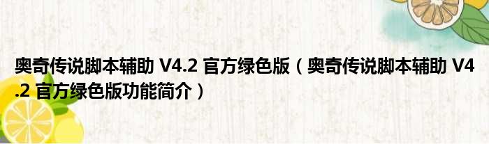 奥奇传说脚本辅助 V4.2 官方绿色版(奥奇传说脚本辅助 V4.2 官方绿色版功能简介)