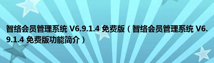 智络会员管理系统 V6.9.1.4 免费版(智络会员管理系统 V6.9.1.4 免费版功能简介)