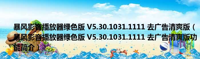导读 大家好,关于暴风影音播放器绿色版 V5 30 1031 1111 去广告清爽版,暴风影音播放器绿色版 V5 30 1031 1111 去广告清爽版功能简介这个很