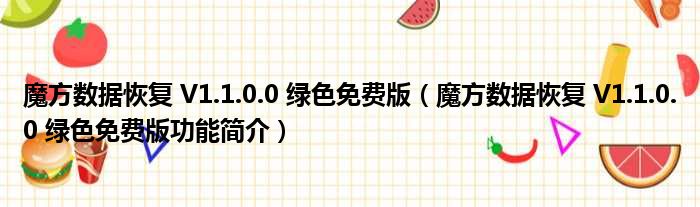 魔方数据恢复 V1.1.0.0 绿色免费版(魔方数据恢复 V1.1.0.0 绿色免费版功能简介)