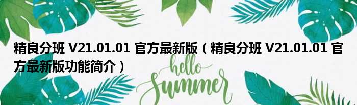 精良分班 V21.01.01 官方最新版(精良分班 V21.01.01 官方最新版功能简介)