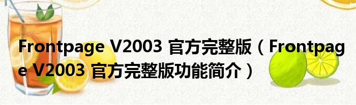 Frontpage V2003 官方完整版(Frontpage V2003 官方完整版功能简介)