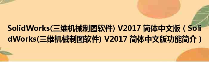 SolidWorks(三维机械制图软件) V2017 简体中文版(SolidWorks(三维机械制图软件) V2017 简体中文版功能简介)