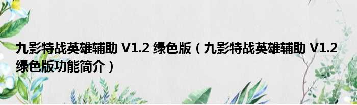 九影特战英雄辅助 V1.2 绿色版(九影特战英雄辅助 V1.2 绿色版功能简介)
