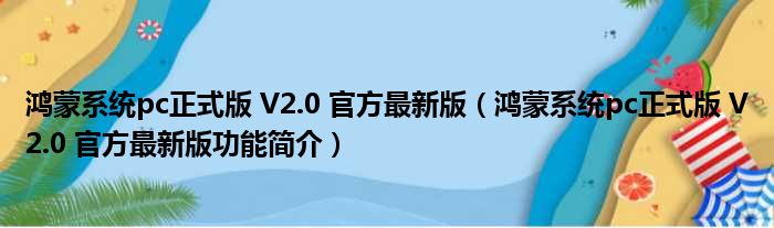 鸿蒙系统pc正式版 V2.0 官方最新版(鸿蒙系统pc正式版 V2.0 官方最新版功能简介)