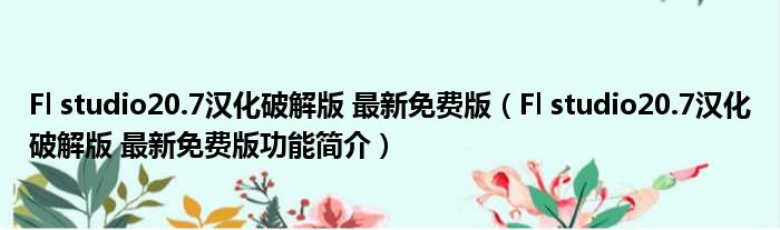 Fl studio20.7汉化破解版 最新免费版(Fl studio20.7汉化破解版 最新免费版功能简介)