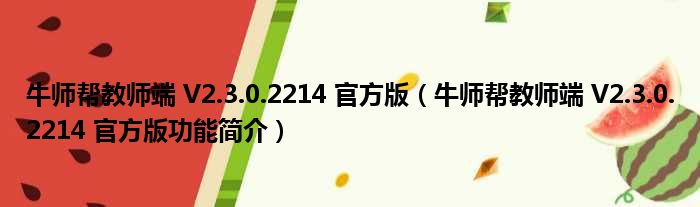导读 大家好,关于牛师帮教师端 V2 3 0 2214 官方版,牛师帮教师端 V2 3 0 2214 官方版功能简介这个很多人还不知道,小勒来为大家解答以上的问
