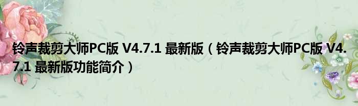 铃声裁剪大师PC版 V4.7.1 最新版(铃声裁剪大师PC版 V4.7.1 最新版功能简介)