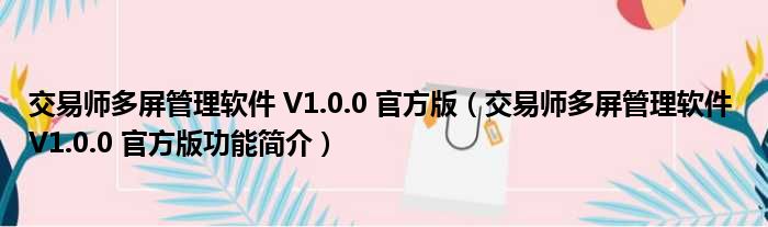 交易师多屏管理软件 V1.0.0 官方版(交易师多屏管理软件 V1.0.0 官方版功能简介)