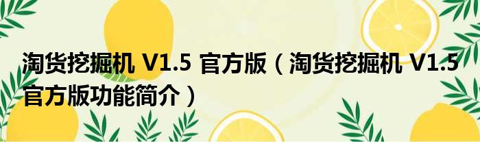 淘货挖掘机 V1.5 官方版(淘货挖掘机 V1.5 官方版功能简介)