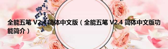 全能五笔 V2.4 简体中文版(全能五笔 V2.4 简体中文版功能简介)