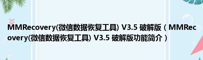 MMRecovery(微信数据恢复工具) V3.5 破解版(MMRecovery(微信数据恢复工具) V3.5 破解版功能简介)