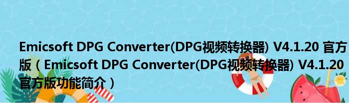 Emicsoft DPG Converter(DPG视频转换器) V4.1.20 官方版(Emicsoft DPG Converter(DPG视频转换器) V4.1.20 官方版功能简介)