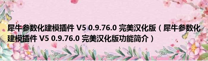 犀牛参数化建模插件 V5 0.9.76.0 完美汉化版(犀牛参数化建模插件 V5 0.9.76.0 完美汉化版功能简介)