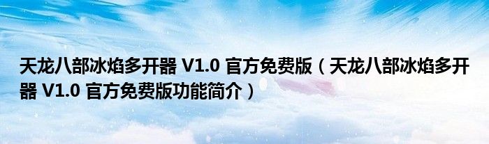 天龙八部冰焰多开器 V1.0 官方免费版(天龙八部冰焰多开器 V1.0 官方免费版功能简介)