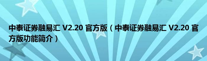 中泰证券融易汇 V2.20 官方版(中泰证券融易汇 V2.20 官方版功能简介)