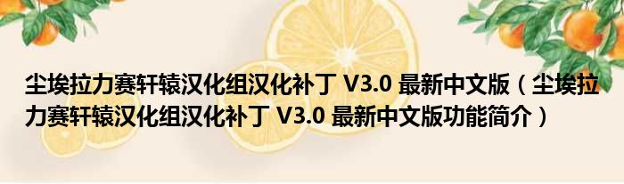尘埃拉力赛轩辕汉化组汉化补丁 V3.0 最新中文版(尘埃拉力赛轩辕汉化组汉化补丁 V3.0 最新中文版功能简介)