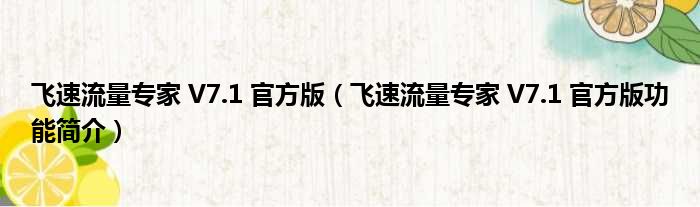飞速流量专家 V7.1 官方版(飞速流量专家 V7.1 官方版功能简介)