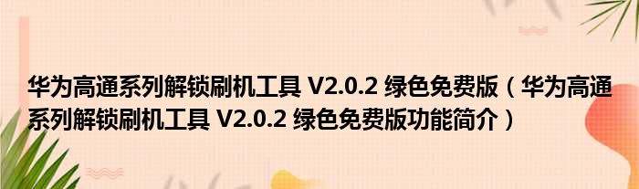 华为高通系列解锁刷机工具 V2.0.2 绿色免费版(华为高通系列解锁刷机工具 V2.0.2 绿色免费版功能简介)