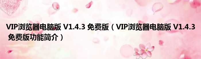 VIP浏览器电脑版 V1.4.3 免费版(VIP浏览器电脑版 V1.4.3 免费版功能简介)