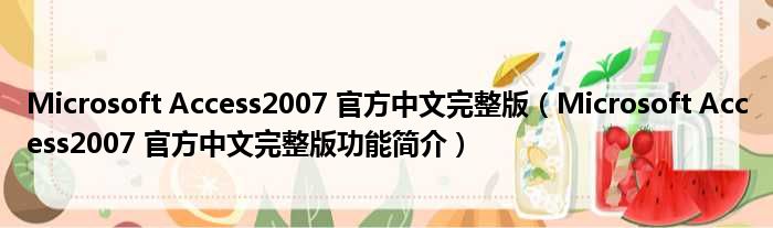 Microsoft Access2007 官方中文完整版(Microsoft Access2007 官方中文完整版功能简介)