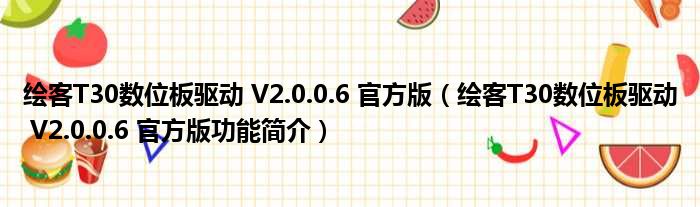 绘客T30数位板驱动 V2.0.0.6 官方版(绘客T30数位板驱动 V2.0.0.6 官方版功能简介)