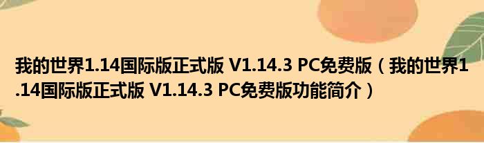 我的世界1.14国际版正式版 V1.14.3 PC免费版(我的世界1.14国际版正式版 V1.14.3 PC免费版功能简介)