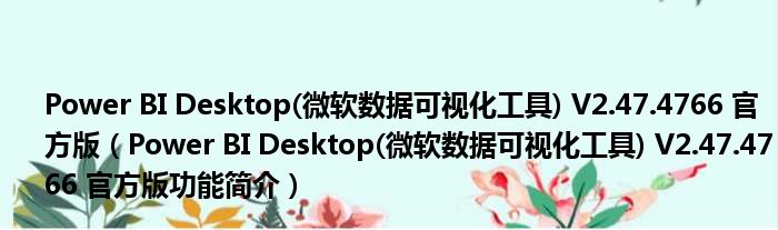 Power BI Desktop(微软数据可视化工具) V2.47.4766 官方版(Power BI Desktop(微软数据可视化工具) V2.47.4766 官方版功能简介)