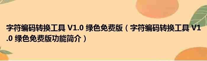 字符编码转换工具 V1.0 绿色免费版(字符编码转换工具 V1.0 绿色免费版功能简介)