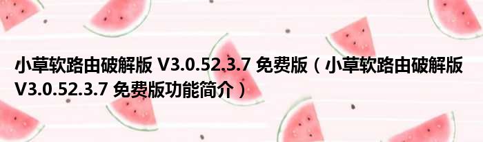 导读 大家好,关于小草软路由破解版 V3 0 52 3 7 免费版,小草软路由破解版 V3 0 52 3 7 免费版功能简介这个很多人还不知道,小勒来为大家解答